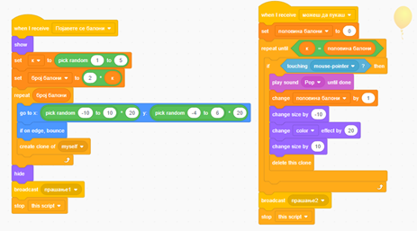Балонот во случајов е еден карактер којшто се „клонира“ во поголем случајно избран парен број на балони. При допир со глувчето половина од балоните пукаат (исчезнуваат) со што остануваат половина од нив коишто треба да се избројат и да се внесе одговорот. Кодот за овој карактер е следниот: