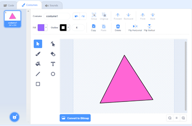 Новите карактери може да се нацртаат со користење на Paint Editor во Scratch или може да се најдат готови сликички од фигурите и да се додадат како карактери во Scratch преку опцијата Upload Sprite: