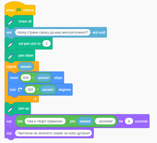 Со оваа алатка ученикот може преку визуализација полесно да ги запомни и препознава правилните многуаголници со одреден број на страни. Алатката се наоѓа на следниот линк: https://scratch.mit.edu/projects/363106117/